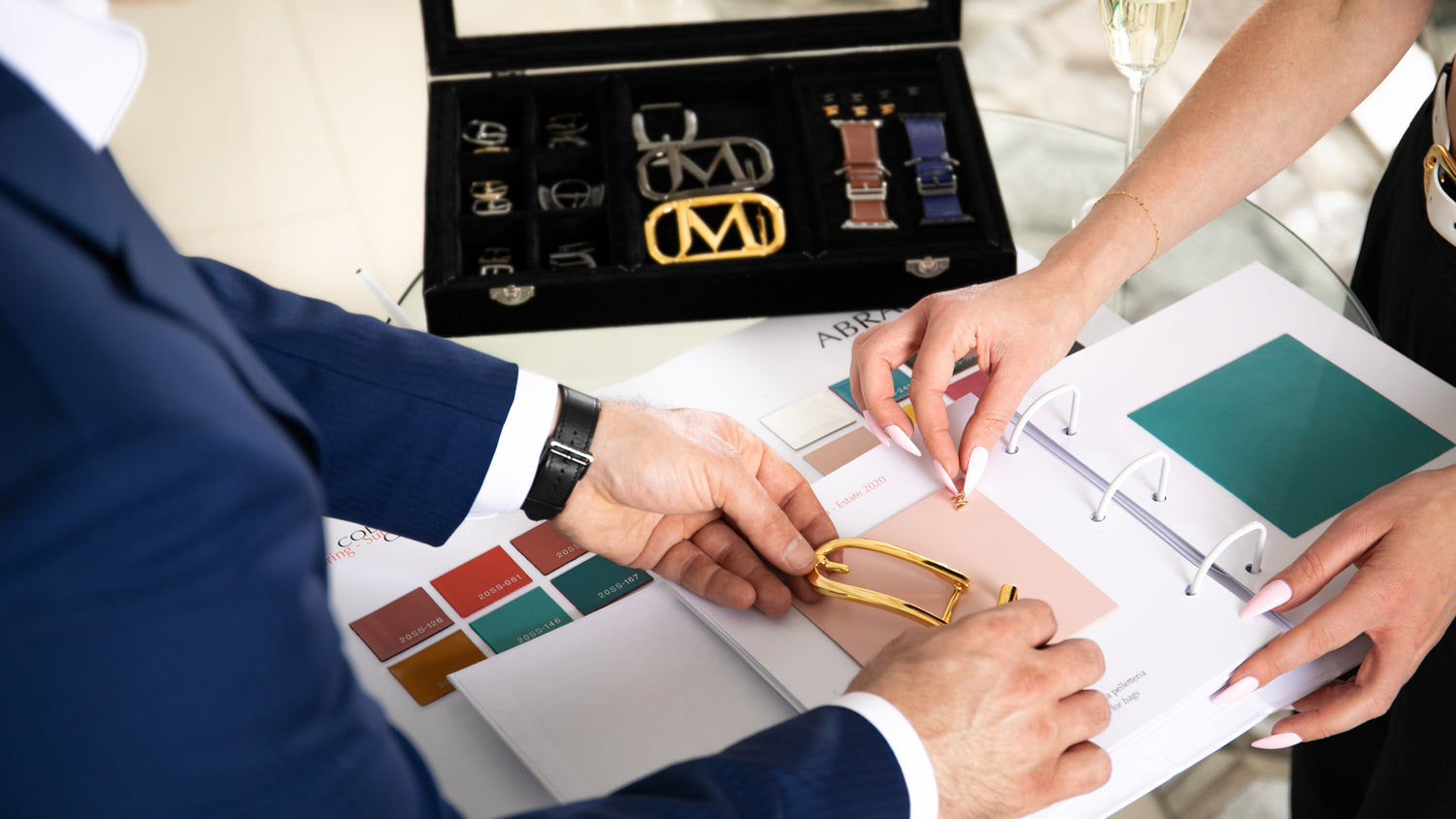 The Made-to-Order appointment is tailored for selecting a piece from our existing designs and to customize it. During this exclusive moment, the client discovers materials, colors, styles, and hardware and has the opportunity to try on the ready-made shoes. Selecting the elements that are suited to one's personality is a unique journey Jacob Madani accompanies the client on. To make this experience relaxing and enjoyable, refreshments and drinks are offered. For a last touch of personalization, laser engraving of initials or a message can be added to shoes and leather accessories.