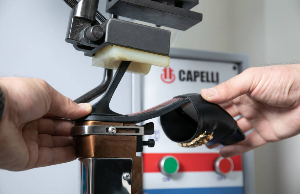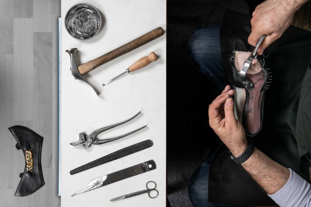 The human hands are accompanied by innovative machinery for precision. The positioning of the heel is an essential step in the balance of the body. By carefully adjusting the sole and heel, the artisan makes sure the shoe guarantees the ideal allure for the silhouette.