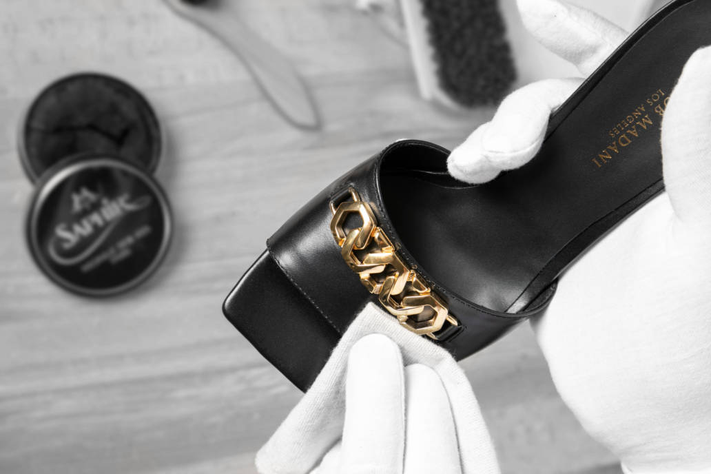 The finishing appears once the shoe is fully made. The shoe is carefully verified before this essential step. When the piece is ready, the artisan brushes, polishes and waxes the leather to give it its unique luster and shine.