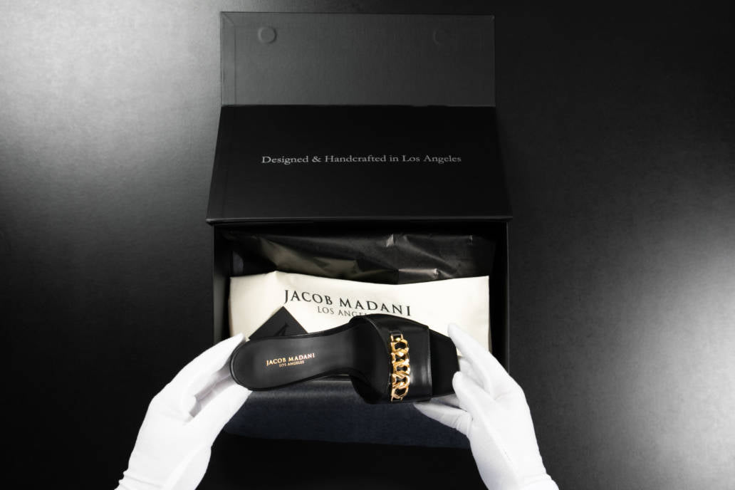 The last step that adds Jacob Madani’s final touch to its creations is the packaging. The unique box has been designed following sophisticated and artistic inspirations to encapsulate the spirit of the brand. Each piece comes with a dust bag to protect the shoes and ensure their quality lasts through time.