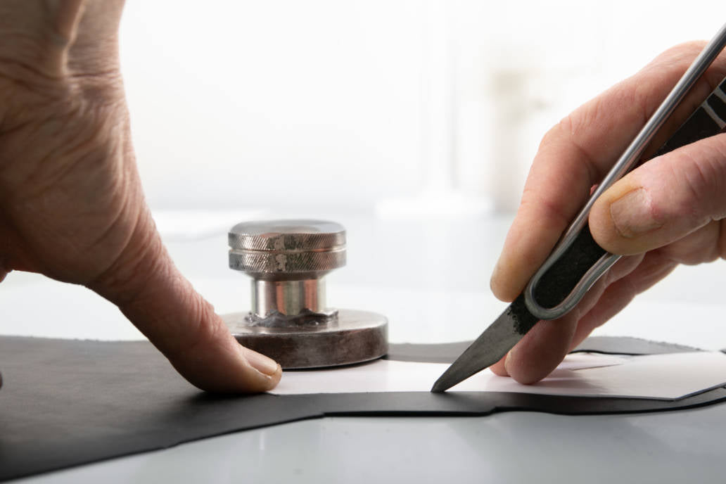 Leather is cut following the designs of Jacob Madani and chosen by the client. The cutter uses the pattern carefully with experienced hands and selects the best parts of the leather. Supplied by close Italian and French partners, each piece of leather is of the highest quality.
