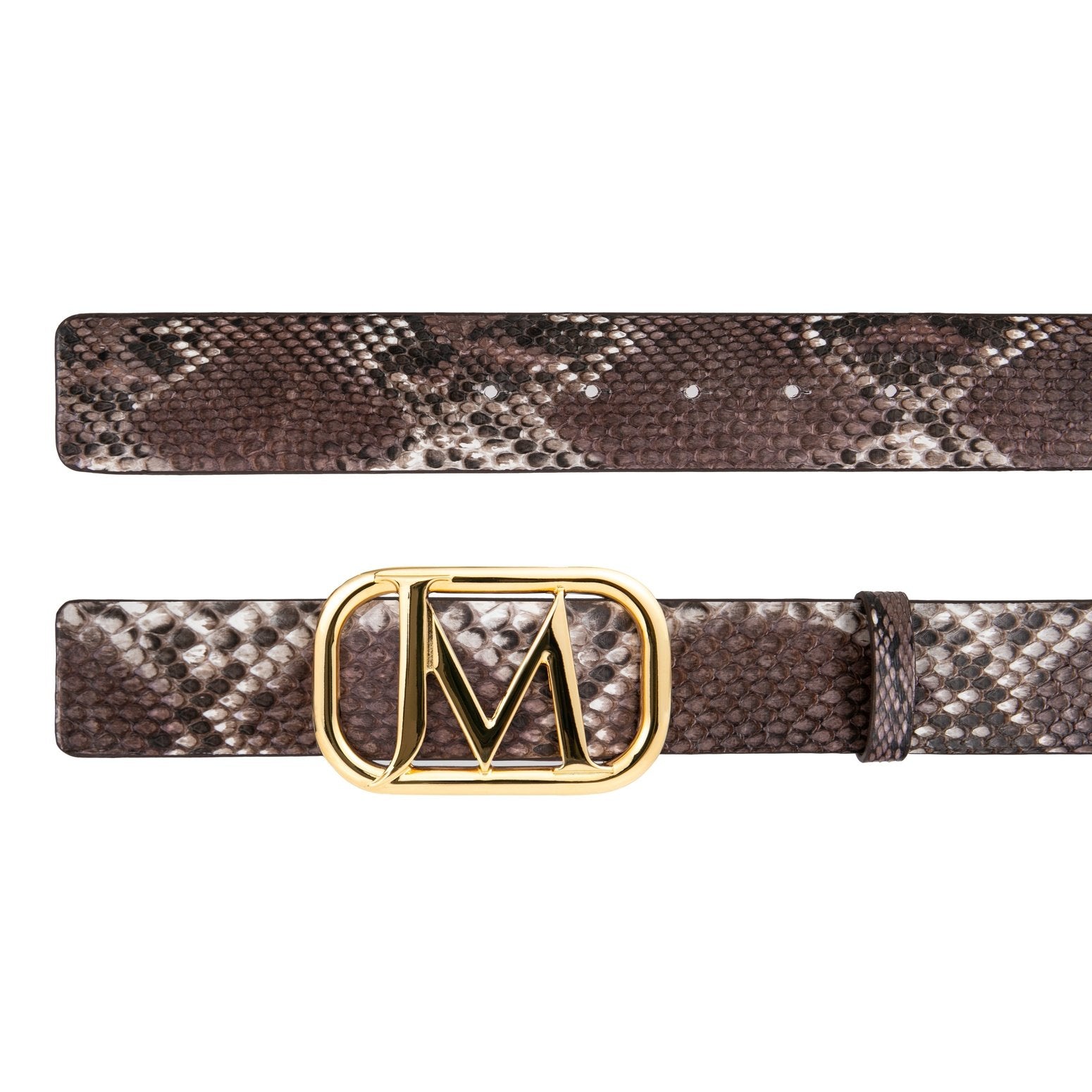 Hand painted Serpentine python belt featuring signature JM buckle in orogold finish.